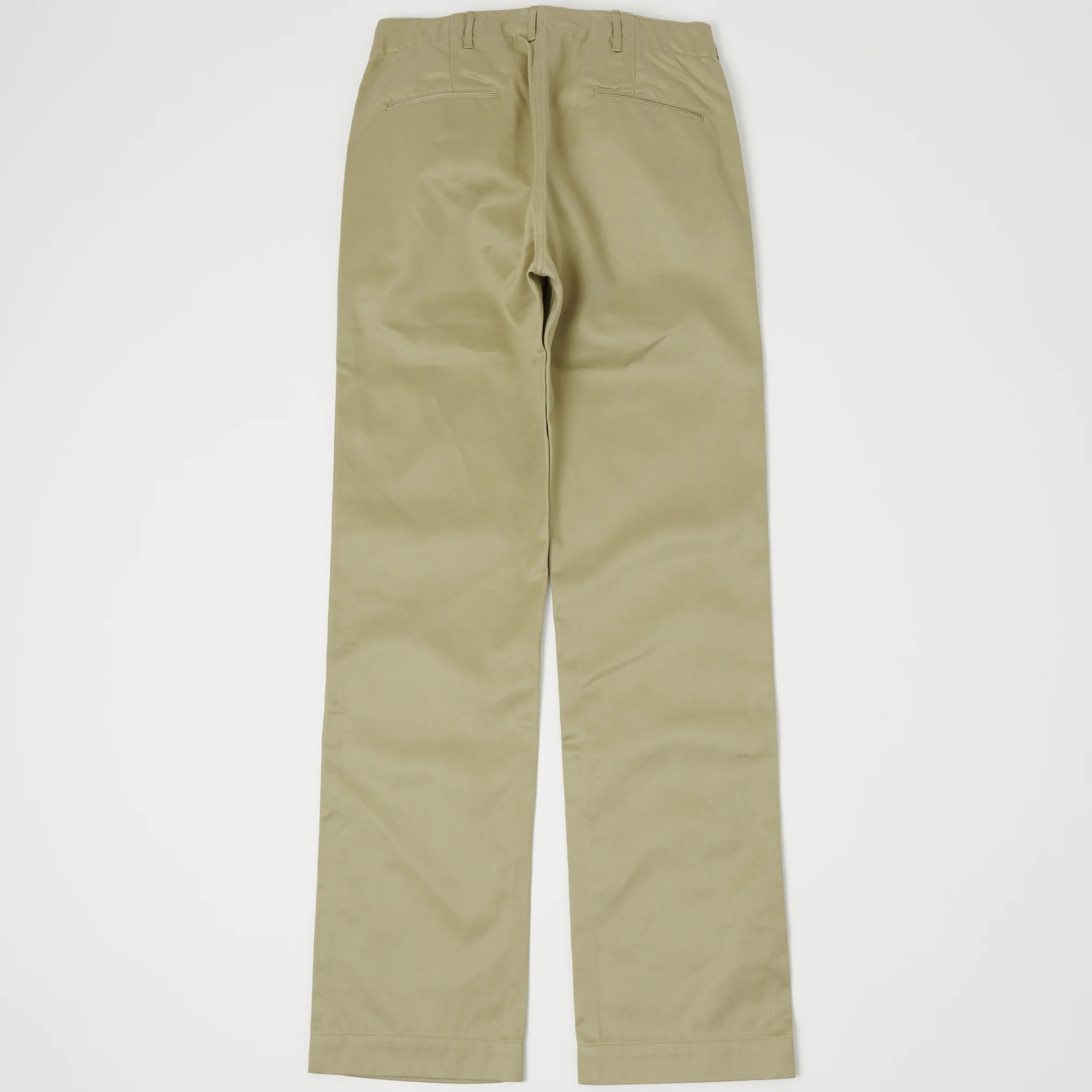 These military chinos from Buzz Rickson's are cut in a slim straight fit, and follow the brilliant tradition of superbly manufactured garments which we have come to expect from this company. The fabric is a durable 100% cotton chino drill, which is hard wearing and softens beautifully over time. Known for their attention to detail, the good people at Buzz Rickson's have fitted this iconic chino model with a vintage reproduction 'Talon' zipper for the fly opening, and narrow, double welted back pockets, designed to withstand the strain of military (and civilian!) life.